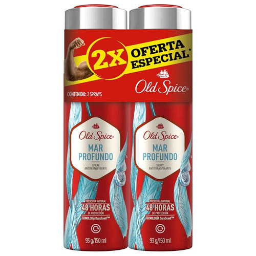Desodorante Old Spice Aerosol Mar Profundo Paquete x 2 Unidades x 93 Gramos