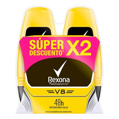 Desodorante Rexona Men Roll on V8 Paquete x 2 Unidades x 50 Gramos