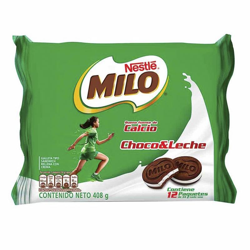 Milo Galleta Sándwich Choco Leche Paquete x 12 Unidades 408 Gramos