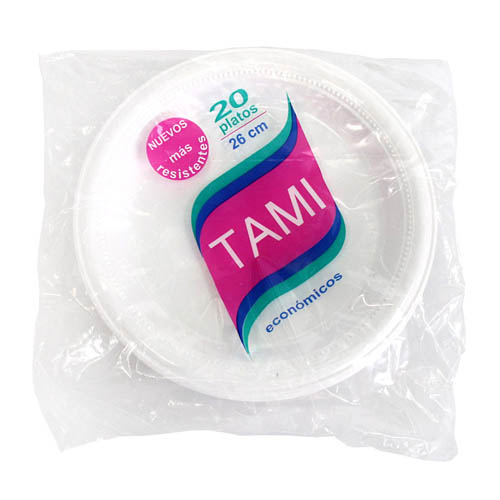 Tami Plato 26 cm Blanco Unidad x 20 Unidades