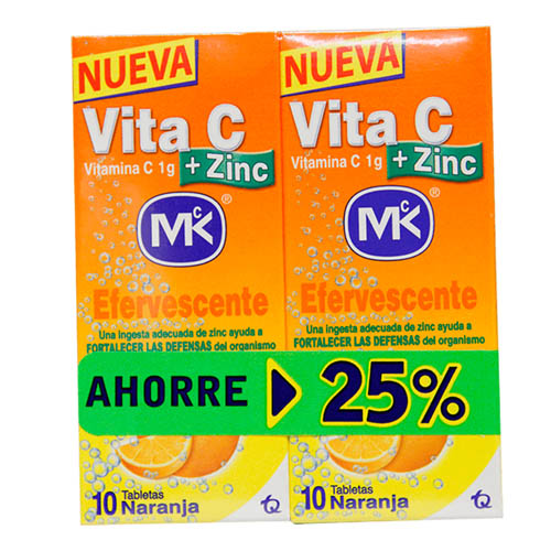 Vitamina C MK Efervescente Naranja + Zinc Paquete x 2 x 10 Unidades